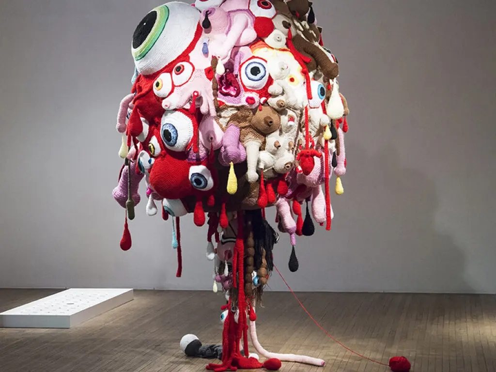 De transdisciplinaire conceptueel kunstenaar Gil Yefman kruipt in de huid van zijn creatie TUMTUM. Letterlijk. Dit volledig gehaakte ensemble van borsten, genitaliën (met bijbehorend gehaakt lichaamsvocht) en andere organen refereert aan het Talmoedische begrip tumtum, dat 'persoon van wie het geslacht niet bekend is' betekent. Met TUMTUM wil Yefman een lans breken voor iedereen die zich niet wil comformeren aan de binaire heteronorm.