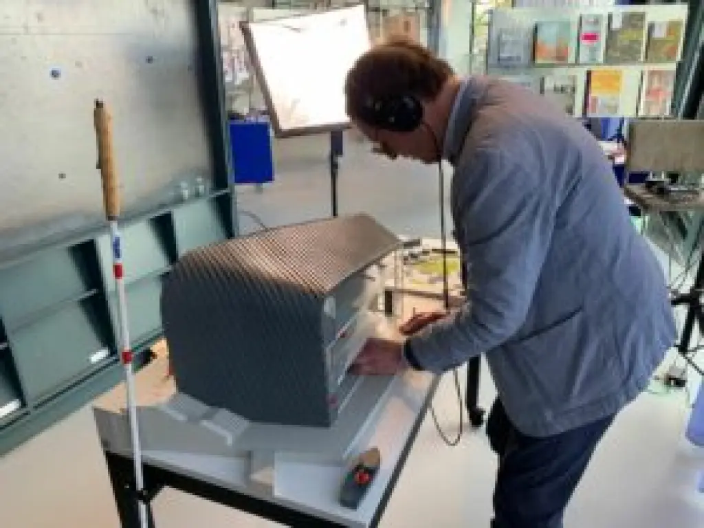 De maquette is ontwikkeld door Hannes Wallrafen en Laura Ubachs (Stichting Geluid in Zicht), Kaita Shinagawa (Studio KU+) en Robert Bosch (geluidstechniek).